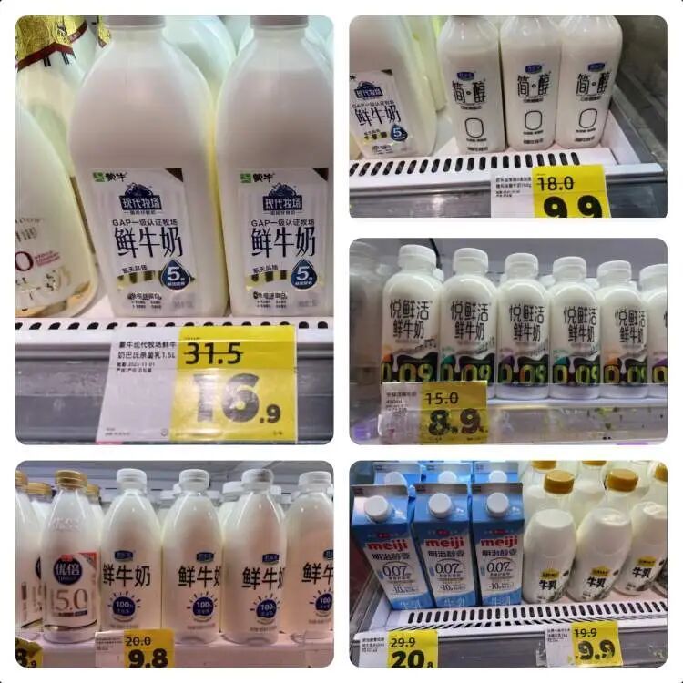 另一些预包装产品,则是熟悉的软折扣路线:比如鲜牛奶,冷柜内没有自有品牌,依然是市场常见的知名品牌。有市民在挑选时会惊讶于品牌牛奶的低价,细看生产日期才恍然大悟——它们许多处于保质期的中段,虽远未“临期”,但也算不上最新日期。