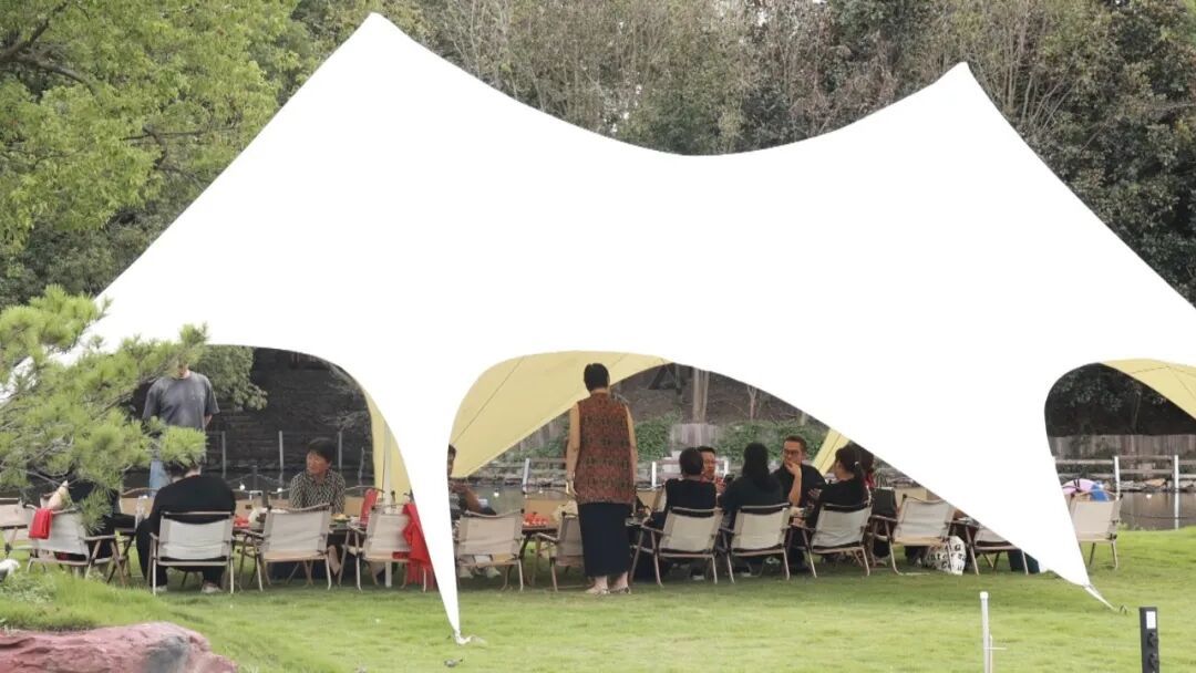 客栈户外区域是休闲放松的核心地带。草坪上支起的超大天幕格外显眼,天幕下的折叠椅整齐排布,氛围感“拉满”。另一侧瓦罐烧烤更是特色项目,“瓦罐烤出来的肉串鲜嫩多汁,能最大程度保留食材本身的味道。”客栈负责人介绍,与普通烧烤相比,这种方式还能避免食材烤焦,口感更稳定,深受游客青睐。