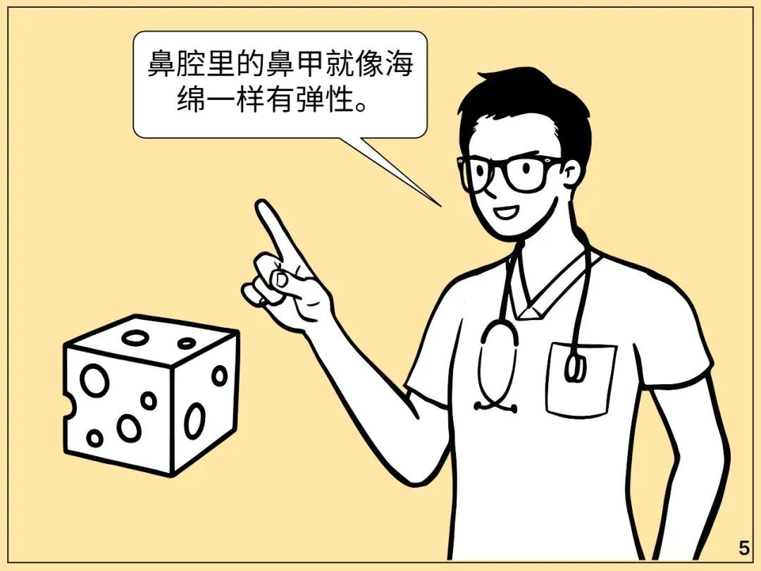 “鼻腔里的鼻甲就像海绵一样有弹性,会随着血流收缩或舒张。萘甲唑啉的收缩血管功能能让鼻甲瞬间‘瘪下去’,鼻子立刻就通气了。但如果天天用,鼻甲就像是被反复压缩后老化的海绵,失去弹性,反而越来越肿,越喷越塞。”