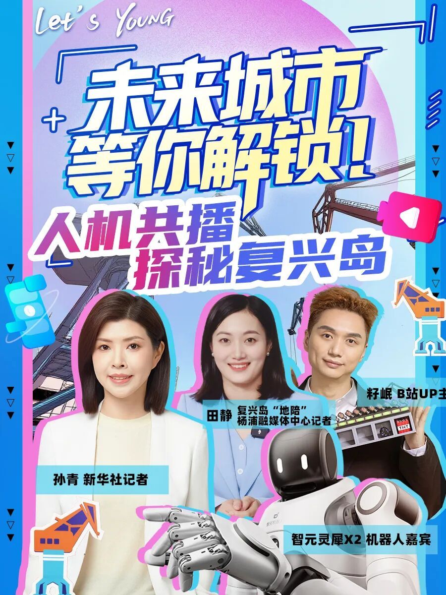 复兴岛,黄浦江上唯一的封闭式内陆岛,正从“战略留白”变身为“未来城市”实验区。在这里,工业遗迹与未来科技交织,艺术装置与智慧场景共存。新华社记者孙青携手杨浦区融媒体中心记者田静、B站百万粉丝UP主籽岷与机器人“灵犀X2”,带你走进上海复兴岛,开启一场“人机共播”的探岛之旅!
