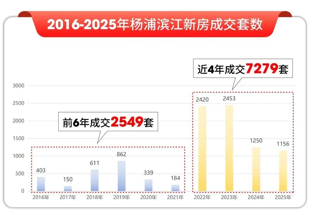 数据显示,近4年(2025年数据包含1-9月),杨浦滨江一共成交了7279套房源,是所有滨江板块之最。