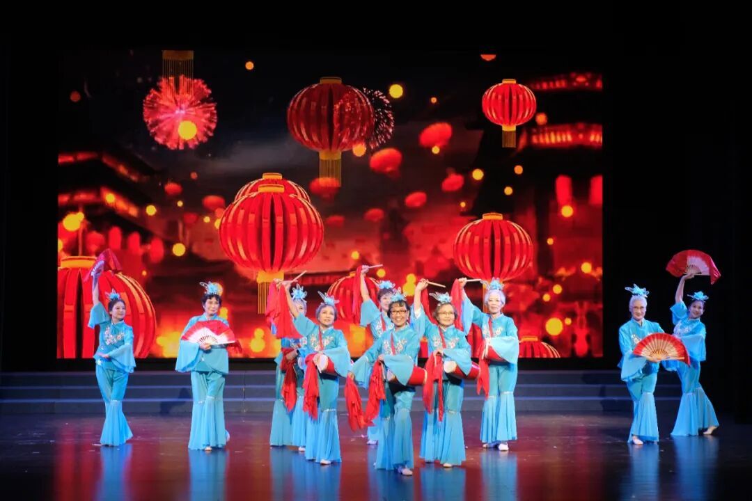 “各位爷爷奶奶、叔叔阿姨,大家下午好!”一声萌萌的电子音传来,机器人主持人“长寿”正式为活动拉开帷幕。随后的文艺展演亮点纷呈:新东苑快乐学堂走秀班将“看花灯”民俗融于舞步;颛小鹤艺术团孩子们以纯净歌声展开一场跨代温暖对话;新东苑快乐家园长者们用腰鼓红绸舞出晚年豪情;华漕镇爱尚广场舞队则以刺绣元素勾勒江南韵味。