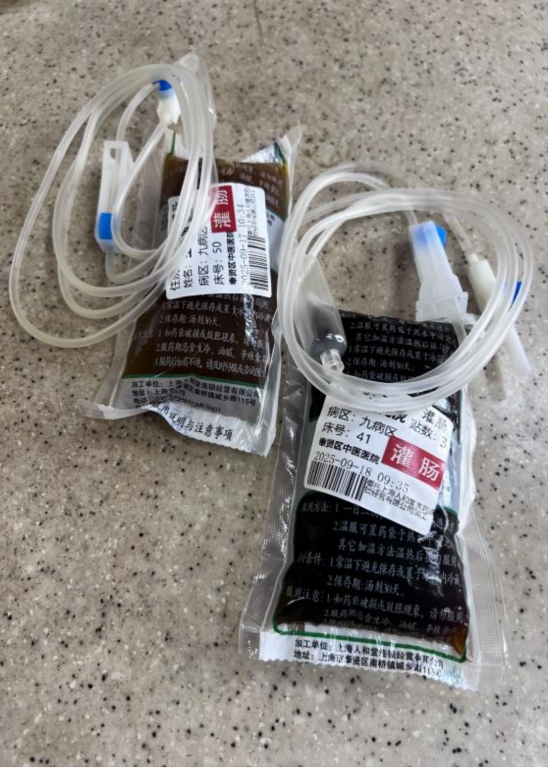 需注意:中药灌肠需由专业医护人员操作,根据患者病情、体质辨证选择药物,不可自行操作;存在肠道穿孔、严重出血、急腹症等情况时,禁止使用中药灌肠。