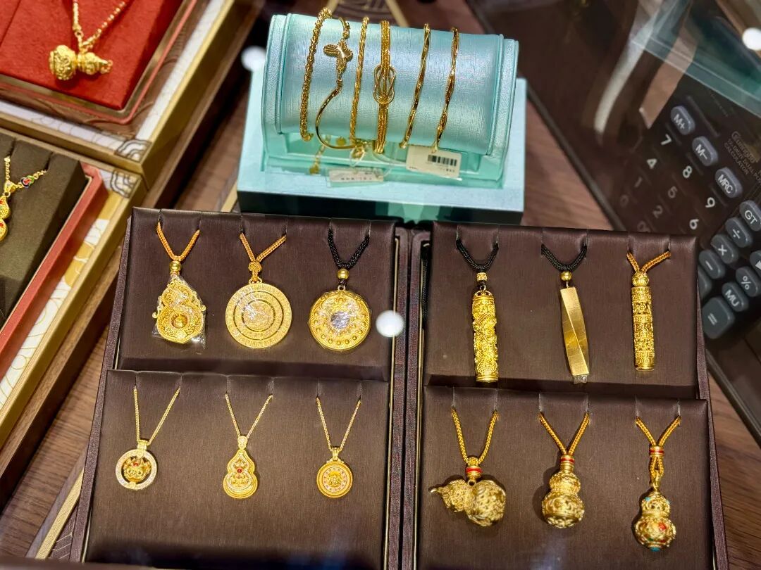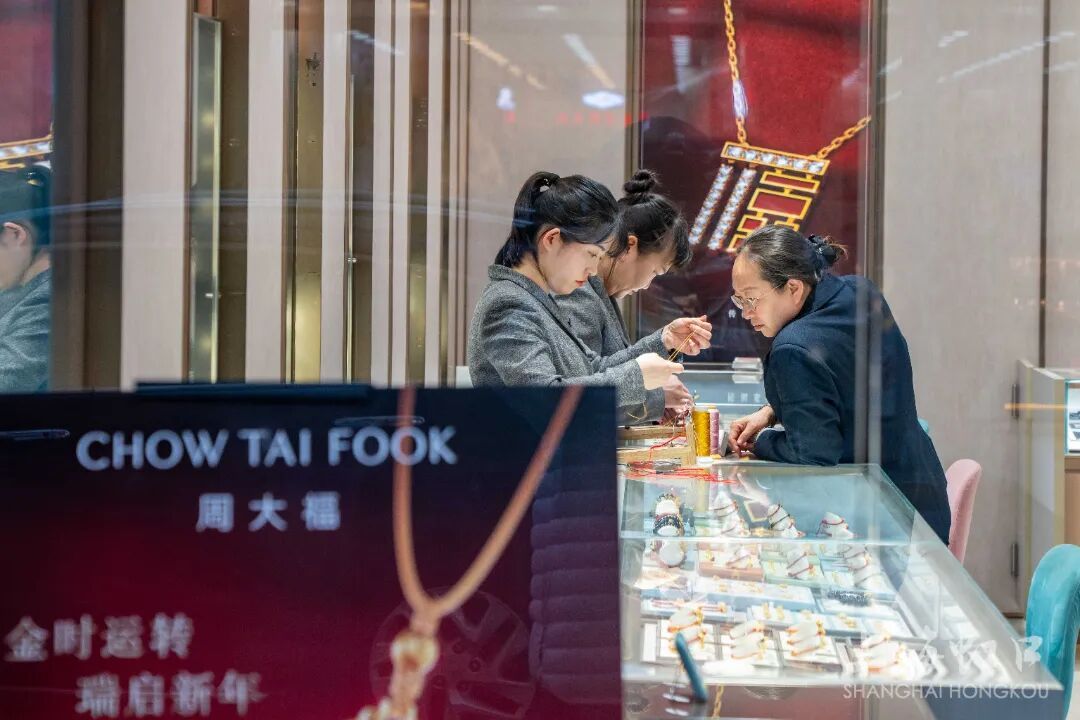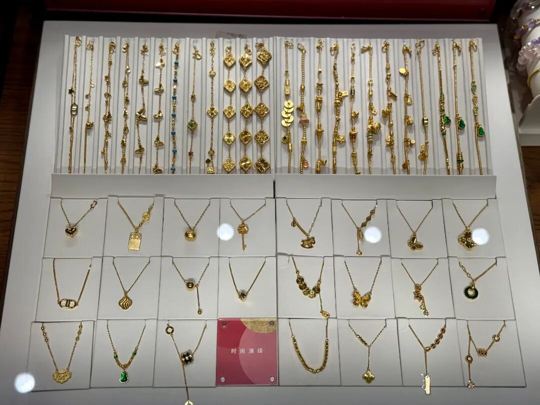 在瑞虹新天地太阳宫的谢瑞麟专柜,店长林云向记者展示柜台陈列的高工艺金饰。“店内目前‘一口价’饰品和高工艺黄金饰品卖得较好。”林云表示,在如今金价普遍走高的情况下,消费者更倾向于购买“小而美、重设计”的产品,这类产品往往采用“一口价”销售。