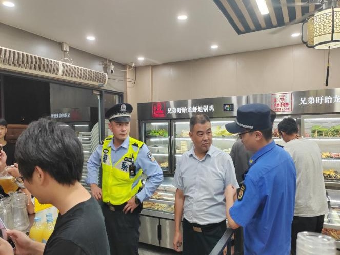 廊下镇充分发挥联勤联动工作机制,强化社会面治安巡防防控,加大对主要道路、人流密集场所、重点单位周边的巡逻频次和密度。镇平安办牵头镇派出所、综合行政执法队、市场监管所等相关职能部门开展夜排档集中整治,重点关注寻衅滋事、噪音油烟扰民、食品安全卫生等问题,对检查中发现的问题,责令商户限期整改,进一步规范夜排档经营秩序,消除潜在的治安隐患,为进博会筑牢坚实的安全防线。