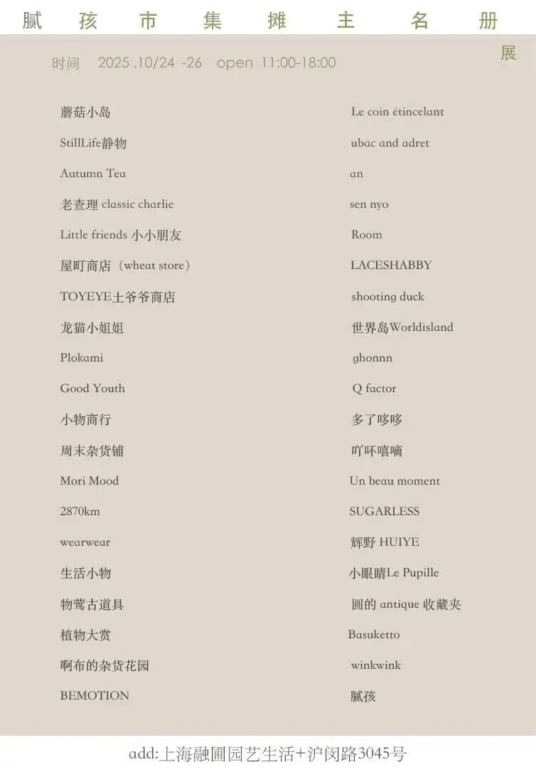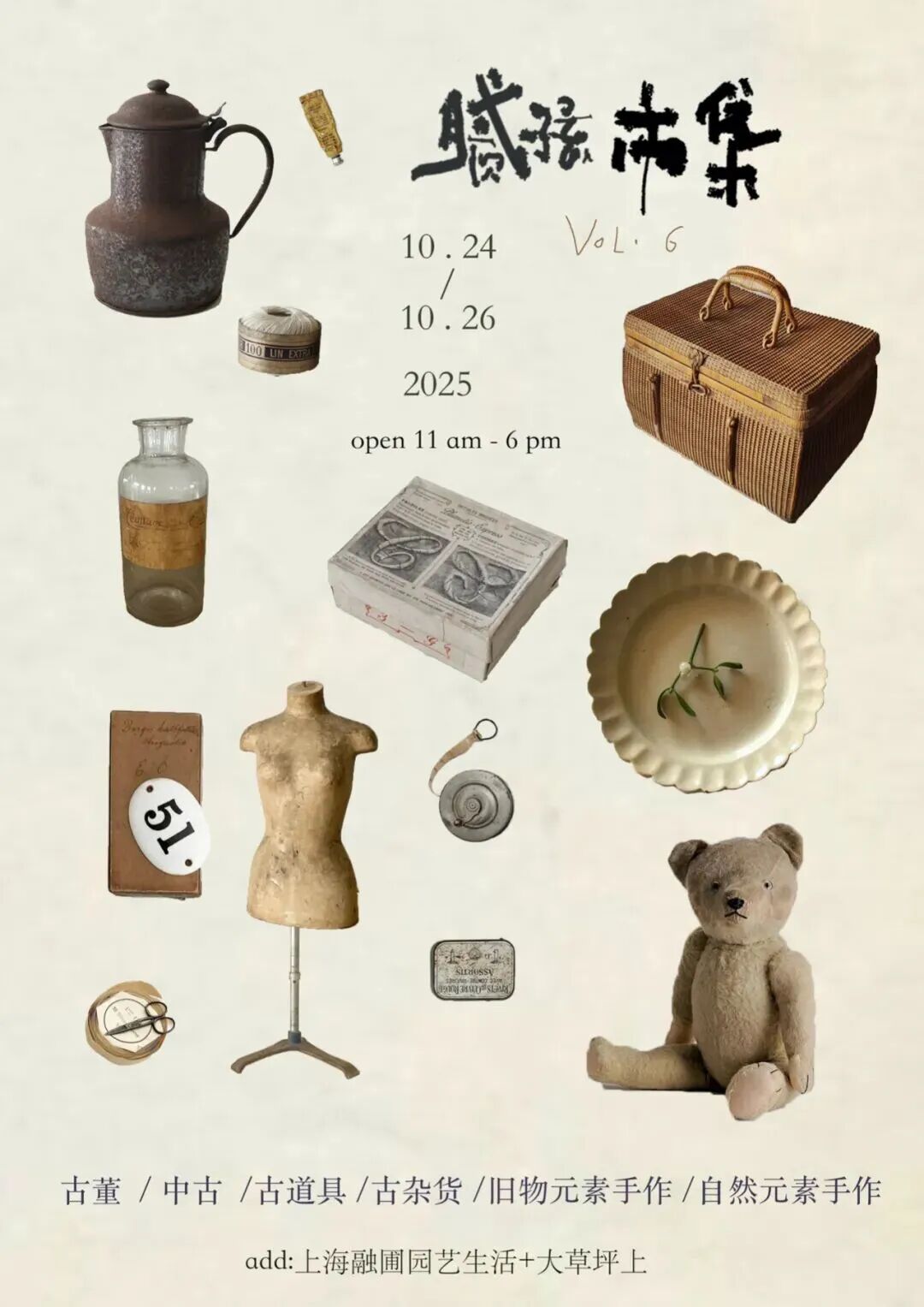 10月24日—26日,腻孩市集第6季将在闵行颛桥融圃园艺生活+举办,活动汇聚中古家具、古董收藏等多类好物,您可以在这个1.8万平方米的花园型社区淘宝贝、拍复古美照~