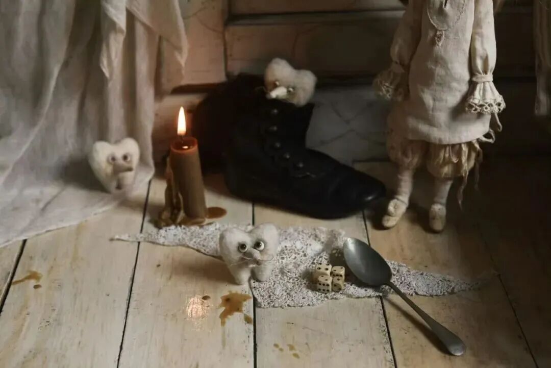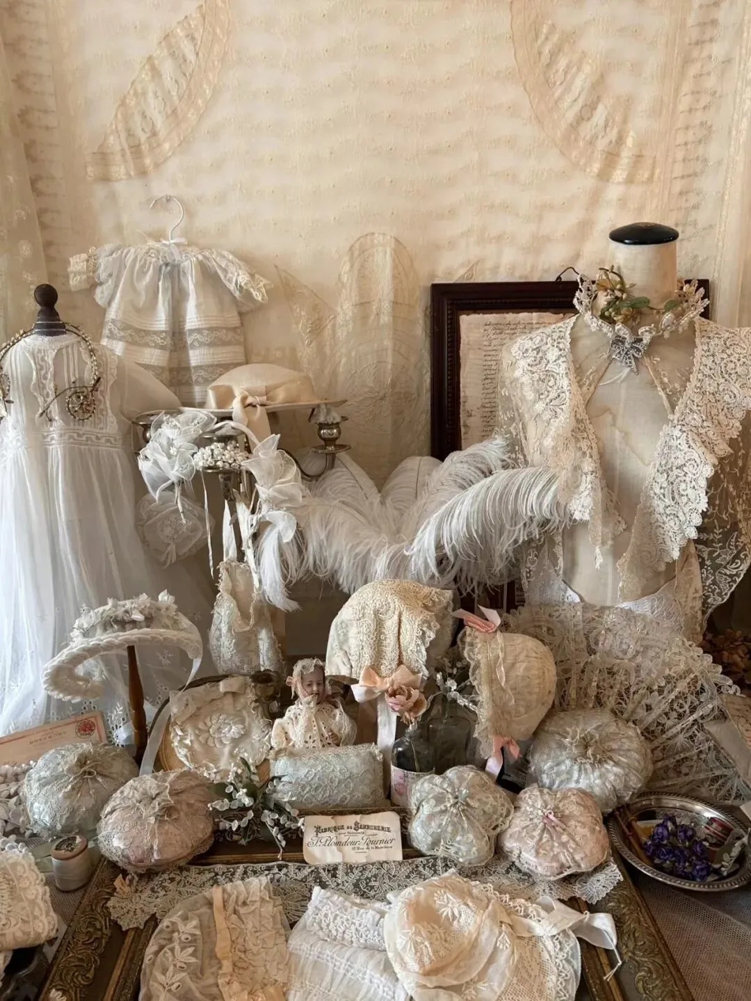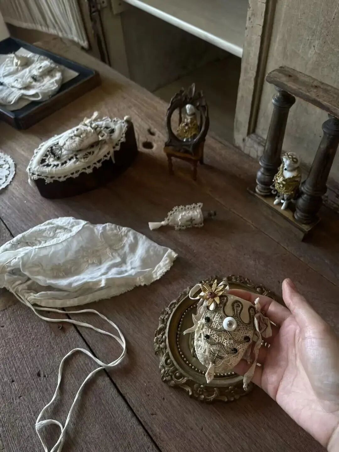 摊主15年开始为玩偶制作服饰,运用天然材质的面料与古董素材制作一切有关于古董娃娃、Blythe的、破碎的、怀旧的、富有童真与怪诞的浪漫梦境。将娃娃和自己的世界合并在一起,希望可以把这一切的新与旧都保存下来。