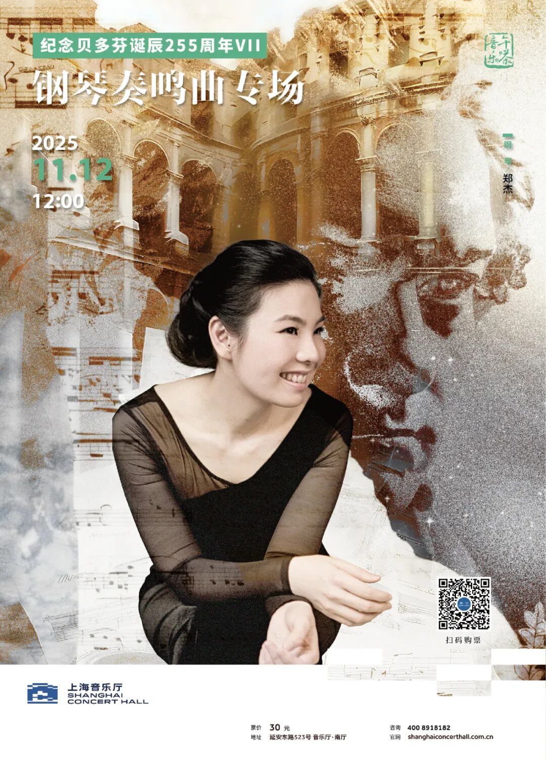 11月12日纪念贝多芬诞辰 255 周年VII——钢琴奏鸣曲专场,聚焦贝多芬中晚期作品,将呈现《降E大调第十三钢琴奏鸣曲》《C小调第八钢琴奏鸣曲》《降E大调第二十六钢琴奏鸣曲》等作品。