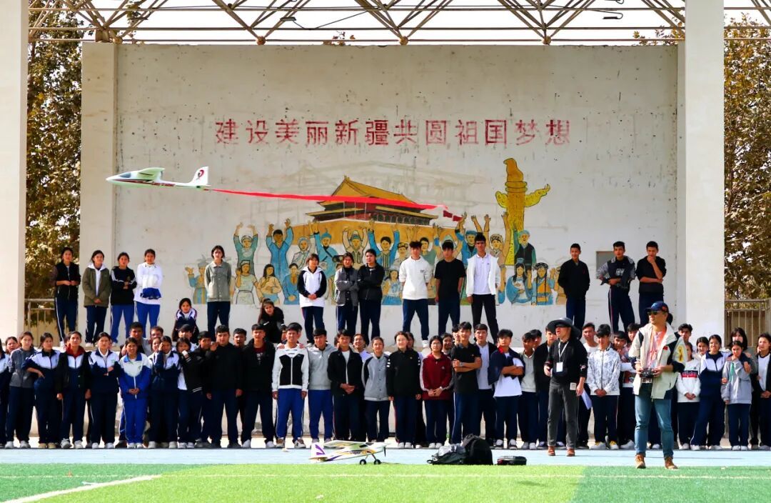 而在喀什的操场上,由国家级裁判、上海航空模型表演队成员、上海市航空车辆模型协会教练等组成的上海校外教育优秀模型教师团队为新疆学生带来了精彩的模型表演。