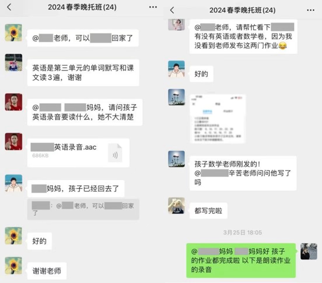 自从参加了晚托班,四年级学生范宇恒常常兴奋地跟家人分享从课堂上听来的新奇故事。“每次到点来接他,都是意犹未尽的样子,总想再多待一会儿。” 范宇恒的奶奶说,“这里挺好的,小区好多孩子都来一起写作业,也有学习氛围,还认识了很多新朋友。”
