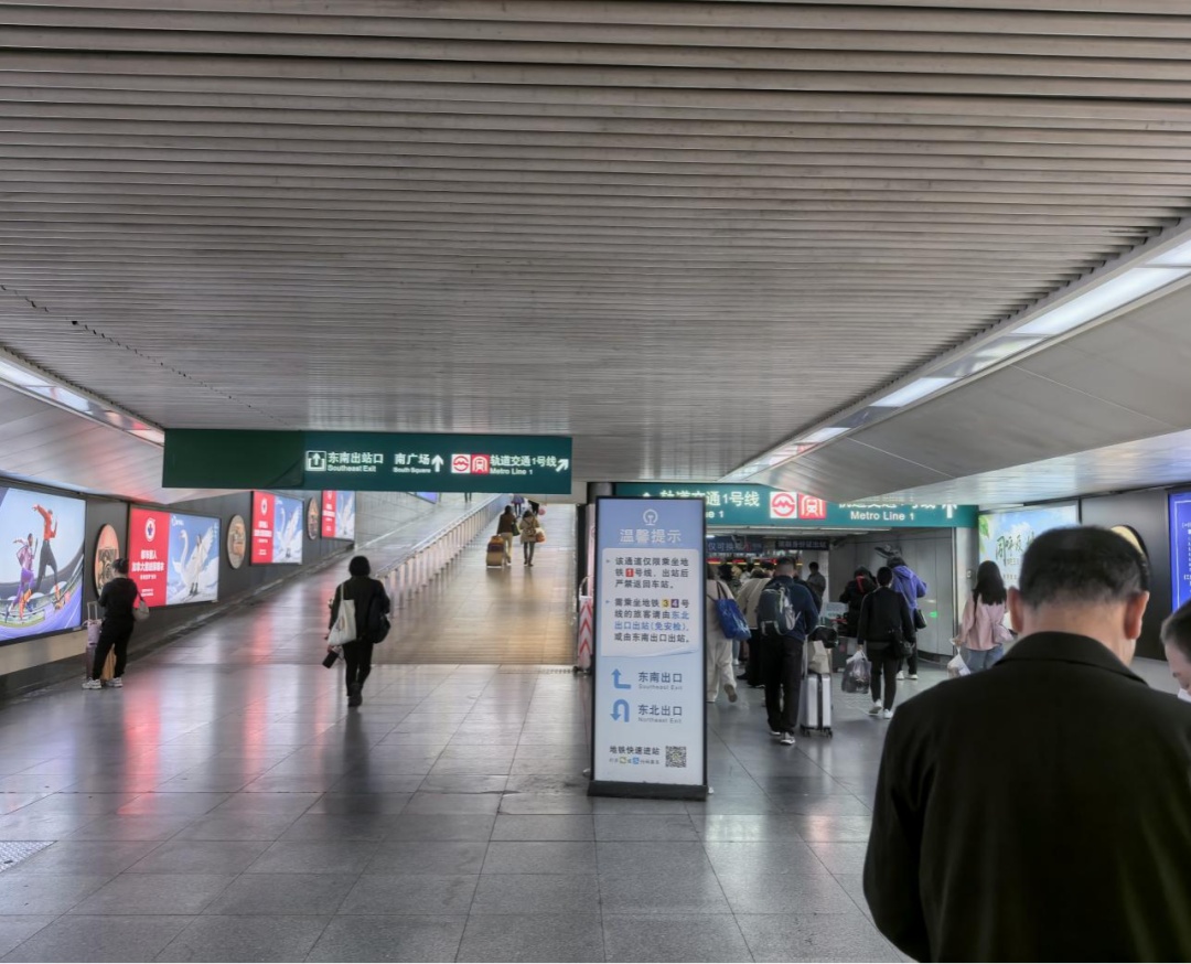►铁路上海火车站东南出口至1号线的单向免安检通道暂时关闭