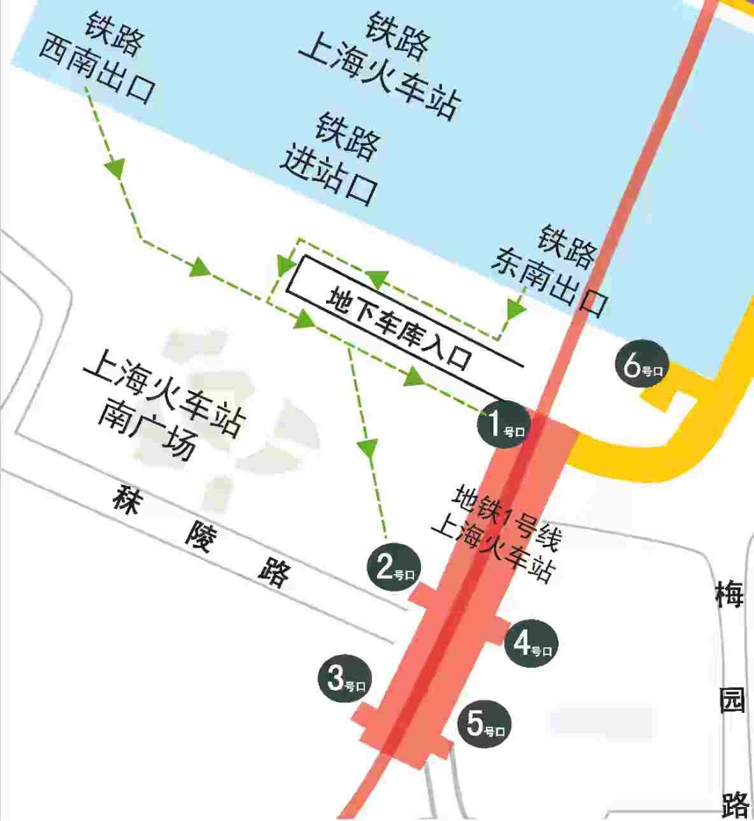该通道封闭施工期间,上海火车站铁路到达旅客,如需换乘地铁1号线,可由铁路东南或西南出口出站——至铁路南广场——从地铁1、2号口进站。