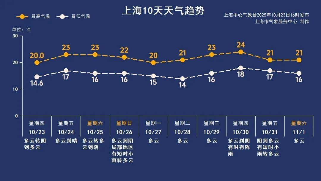 今日进入“霜降”节气 “霜降”节气上海显现出秋高气爽的特点 节气常年平均气温为17.5℃ 平均降水量为23.6毫米 随着冷空气势力增强 降温幅度和昼夜温差增大 大家熟悉的 “洋葱穿衣法” 也将派上用场 “霜降”也是上海全年中天气最平稳 预警最少的节气 今天上午 阳光理想,秋高气爽 中午前后 受海上冷流云系影响,云量增多 市区徐家汇站全天气温在14.6℃-20.0℃ 最低气温再刷下半年新低 午后起风力也有所增大 陆地6级阵风 沿江沿海地区有6~7级阵风 风大加上气温偏低,秋凉明显 网友纷纷吐槽: 上海直接入冬了…… 也有网友表示: 这个天气最舒服 还有网友 甚至开始怀!念!夏!天! 明天天气更为晴好 气温进一步上升 中心城区全天气温在17~23℃之间 郊区早晚要凉一些 最低气温在13~16℃左右 需要提醒大家的是 受高空动量下传影响 风仍比较大 阳台晾晒换季衣物记得做好固定措施 明天多云到晴 偏北风4-5级阵风6级 沿江沿海地区5级阵风6-7级 明天最高气温23度,最低气温17度 明天相对湿度45%-85% 马上就要到周末了 未来几天上海的天气如何呢? ↓↓↓ 周六延续秋高气爽的天气,气温宜人 很适合大家安排出游活动 周日受弱冷空气扩散影响 云系有所增多,伴有弱降水 下周初阳光回归,弱冷空气叠加辐射降温 气温回落,特别是早晚,秋凉明显 预计月底还将有一次弱冷空气天气过程 近期气温起起伏伏 很容易诱发感冒 大家及时关注天气 安排好生活和出行 10月25日(周六):多云转多云转阴,16~23℃ 10月26日(周日):多云到阴局部地区有短时小雨转多云,16~22℃ 10月27日(周一):多云,15~20℃ 10月28日(周二):多云,14~21℃