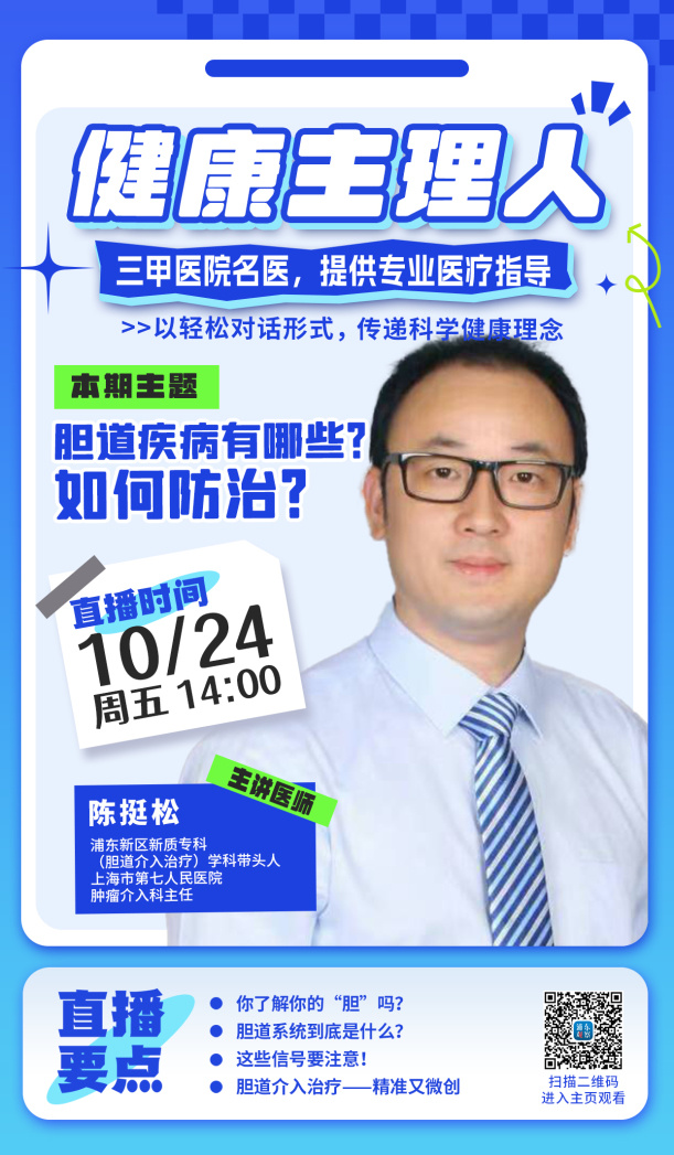 今天,我们邀请到浦东新区新质专科·胆道介入治疗学科带头人、上海市第七人民医院肿瘤介入科主任、浦东医务工匠、硕士研究生导师陈挺松,来聊聊这条‘生命小通道’——胆道,到底有多重要。