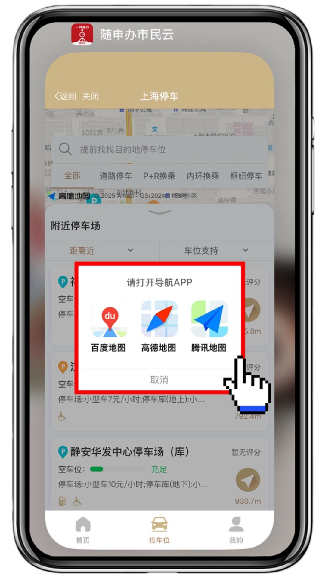 ️ 在“上海停车”挑选好您想前往的停车场,并点击“导航”选项,您可以选择您偏好的导航应用,比如百度地图、高德地图或腾讯地图等。