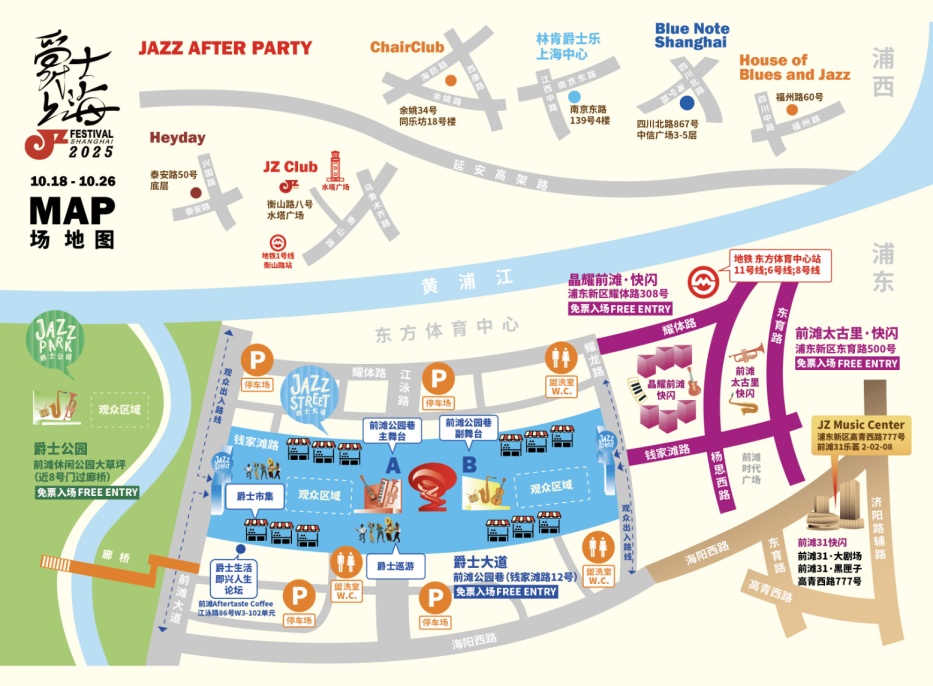 以“爵士上海·音乐世博”为主题的2025爵士上海音乐节,由世博管理局、陆家嘴集团与JZ Music联合主办。从剧场内的正装聆听,到公园中的松弛闲坐;从商业体里的惊喜快闪,到市集旁的即兴哼唱,构建起覆盖前滩31、前滩太古里、晶耀前滩、前滩公园巷及前滩休闲公园的立体音乐网络。