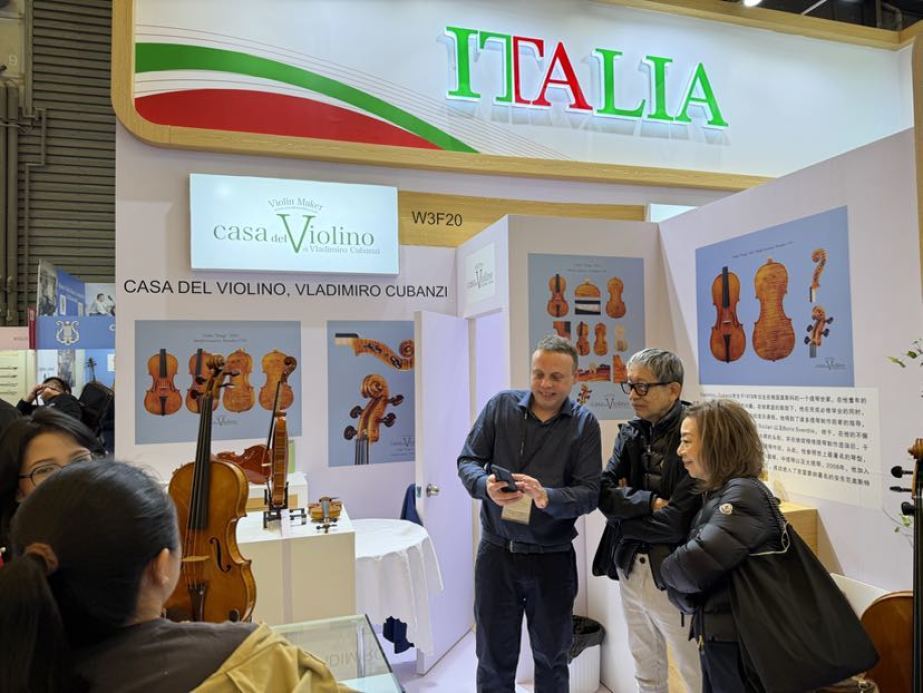 “这是我第一次参加上海的乐器展览会,我期待通过这个平台能更好地拓宽对当地工匠和行业的了解。”来自意大利的小提琴制作师弗拉迪米•库班齐说。