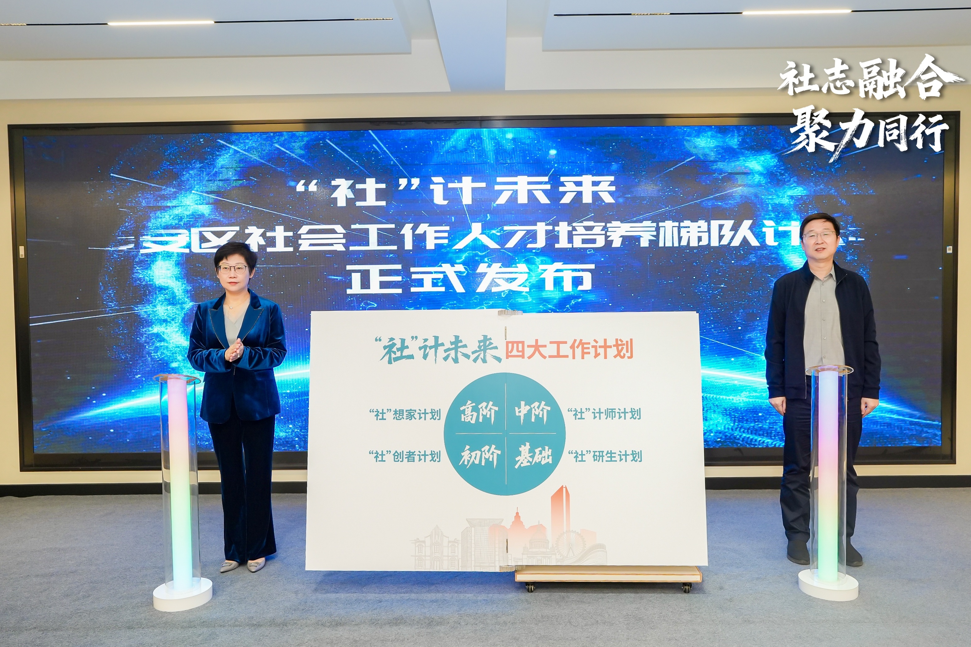 为进一步发挥社会工作专业人才在服务新兴领域、基层治理、服务凝聚群众等方面的专业优势,区委社会工作部升级推出了“社计未来”社会工作专业人才阶梯式培养计划。该计划通过科学模型测量,为社会工作从业者制定“十全计划”,搭建了从“社研生”“社创者”到“社计师”“社想家”四阶发展路径,全方位、多层次覆盖了成长发展各阶段需求重点,精心绘就了一幅清晰的“人才蓝图”。