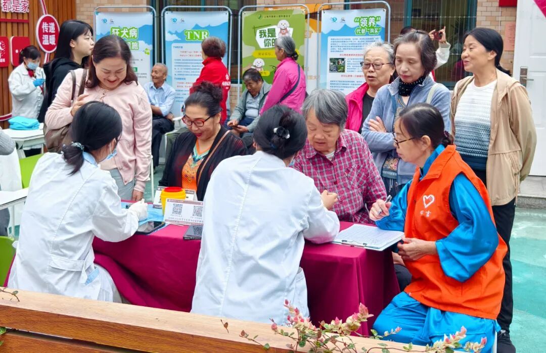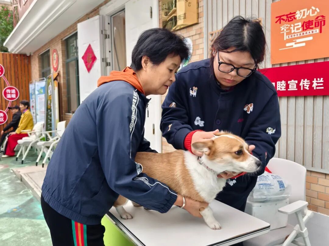 一旁的“养宠实操训练营”里,宠物护理师也颇为忙碌。他们一边给宠物体检,一边手把手教主人梳毛、剪指甲、清洁耳道等正确的护理方法,集中讲解文明养宠知识与实用的训练方法,让社区的宠物主人们秒变“养宠大神”。除了文明养宠宣传展示、宠物体检及现场犬证办理咨询等实用服务,现场的免费理发、义诊等便民服务也为更多居民带来“家门口”的舒心便利。