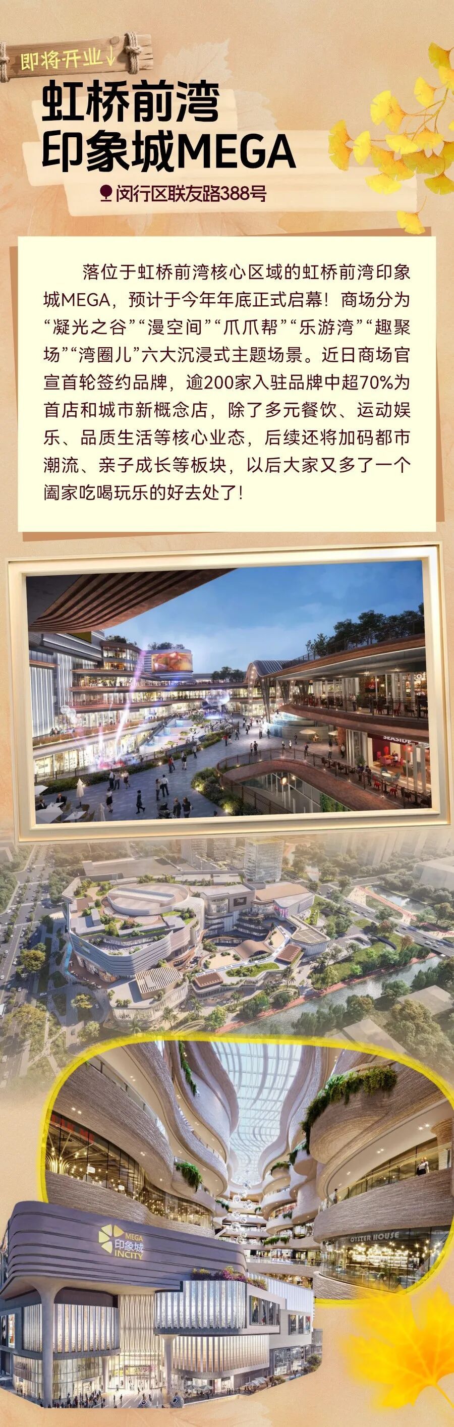 天凉好个Chill,逛购正当时!今年,沪上新增多个商业地标,不仅为市民结伴购物、休闲打卡提供了全新选择,也为亲子家庭打造了适宜的遛弯空间,其中就有位于闵行的虹桥前湾印象城MEGA。跟着小编一起去打卡吧~