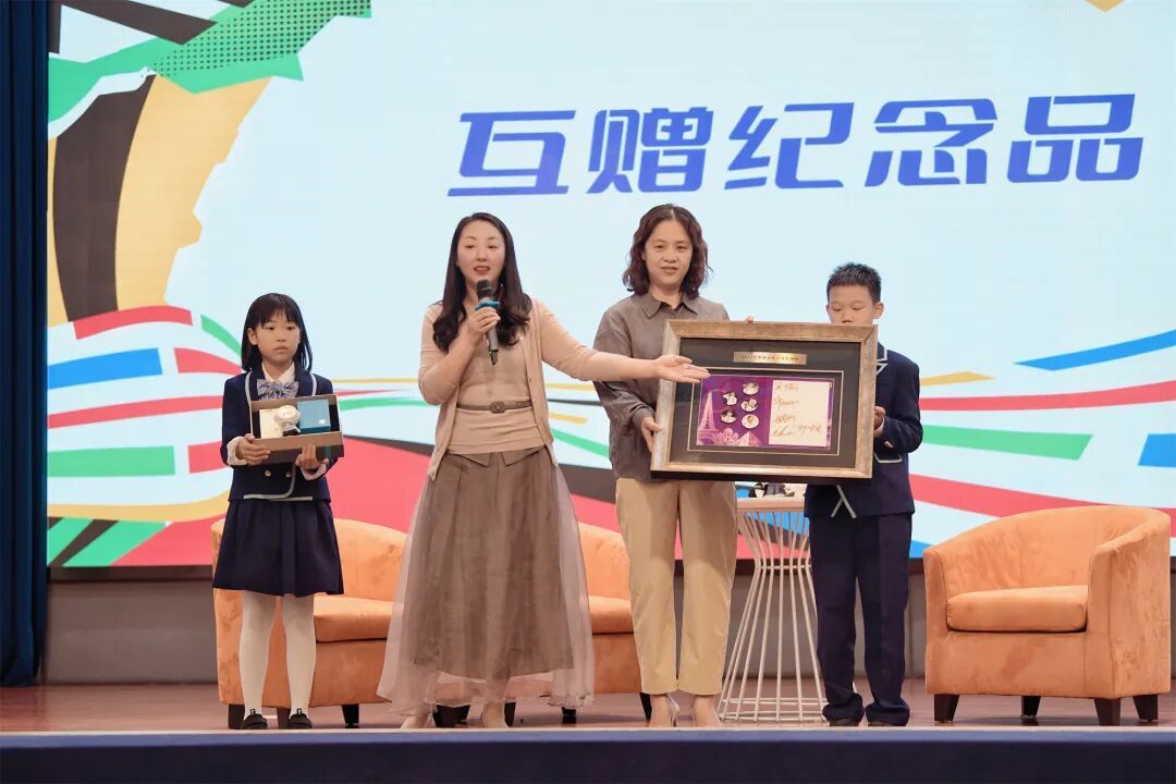 上海市世外小学常务副校长与上海市体育宣传教育中心相关负责人互赠纪念品