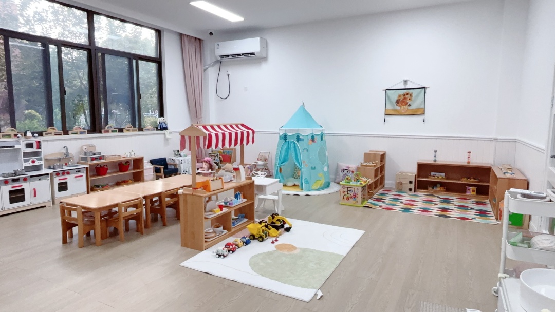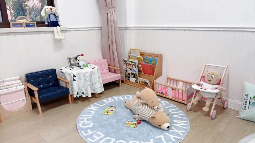 除了新投入使用的航华社区宝宝屋,位于闵行区宁虹路1122号新虹街道社区文化活动中心内的爱博社区宝宝屋,也为周边1—3岁幼儿家庭提供临时托、计时托和科学育儿指导服务。依托托育园资源创设了充满童趣的活动室、洁净的盥洗室、家长休息区等场地,同时,拥有丰富的教玩具、图书、器械等设施设备。