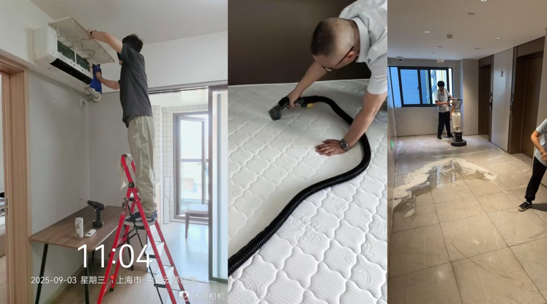 量身定制,满足多样。该项目位于杨浦新江湾城,周边企业云集,租客以年轻高知群体为主,他们对生活品质有着较高追求。基于此,项目在做好常规服务基础上,进一步推出了一系列增值服务:如入租时提供空调、床垫深度清洁服务,定期对走廊地面进行抛光保养;当租客遇到宠物走失情况时,管家会及时协助调取监控录像并发布寻宠信息,全力提供帮助。