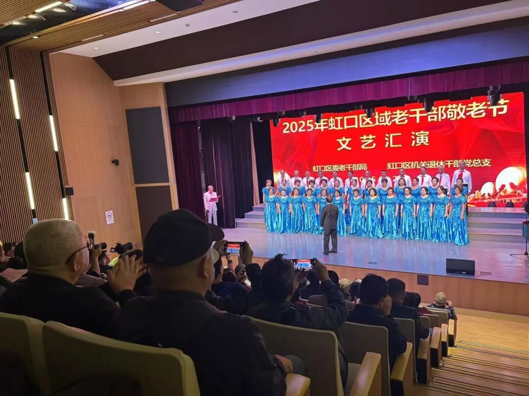 10月24日上午,一场以“敬老情暖、 乐享银龄”为主题的虹口区域老干部敬老节文艺汇演在嘉兴路街道文化活动中心举行。老同志们欢聚一堂,共庆佳节。