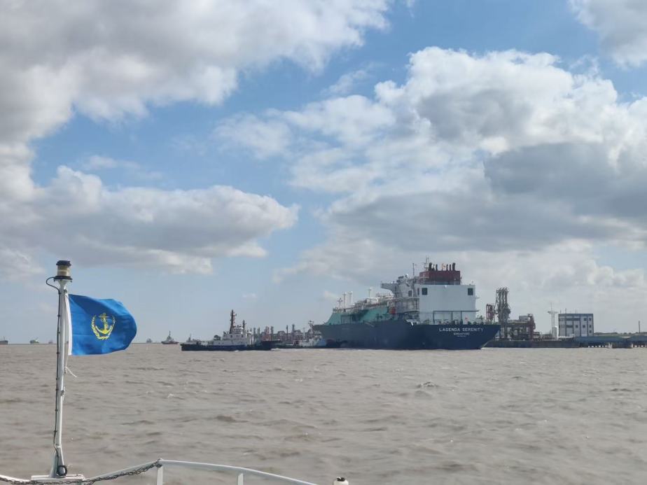 10月23日,“传奇和平”轮在浦东海事局执法人员的全程护航下,稳稳靠泊外高桥五好沟LNG码头。该轮运载了3.4万吨液化天然气,助力城市从容应对后续气温波动下的用能需求。