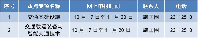 根据《交通运输部关于印发国家重点研发计划“交通基础设施”“交通载运装备与智能交通技术”重点专项2025年度第二批项目申报指南的通知》有关要求,为做好此次国家重点研发计划项目的申报及推荐工作,特通知如下: