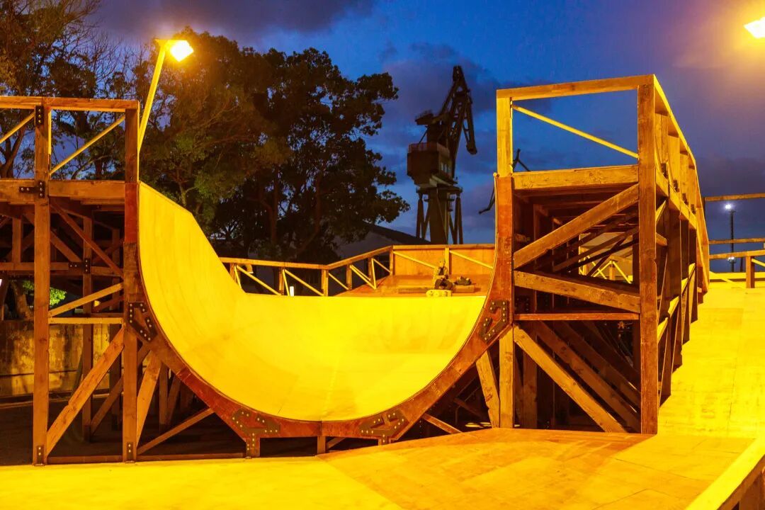 日落,是复兴岛最美的时间。漫步船台公园,曾经的工业遗存成为了最震撼的视觉符号。在船台景区,杨浦滨江置业执行董事徐少明已等候直播团多时。他一边向直播团介绍船台公园命名的由来,一边介绍复兴岛的未来规划。