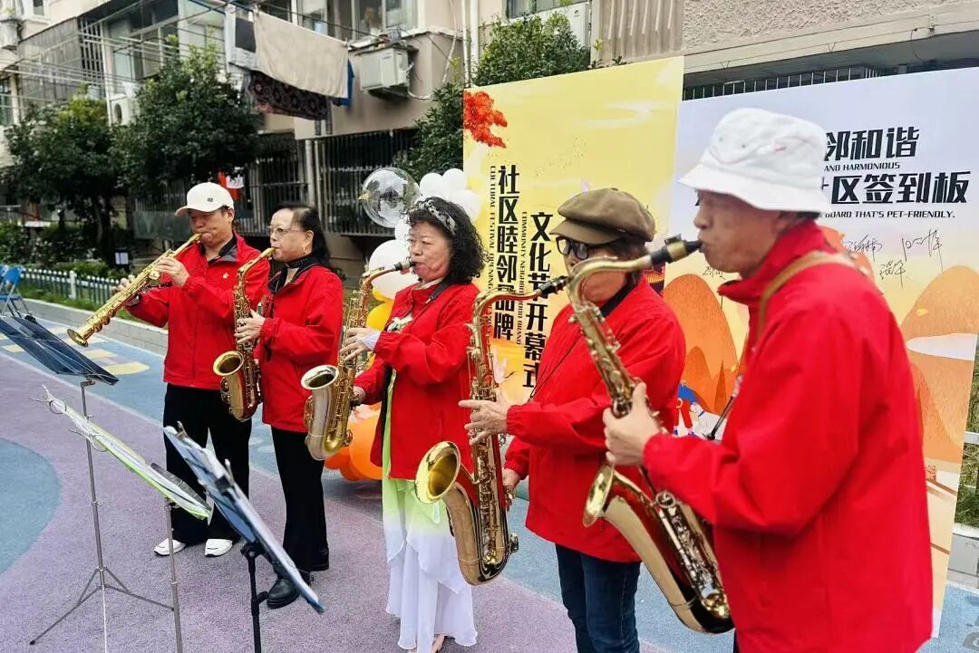 10月22日一早,“繁花园”里乐声悠扬。一支由9名社区老人组成的萨克斯演奏团正在演奏,平均年龄65岁。作为小区首届“睦邻品牌文化节”的开幕仪式,这更像是展示控江七村“人人参与治理”成果的鲜活图景。