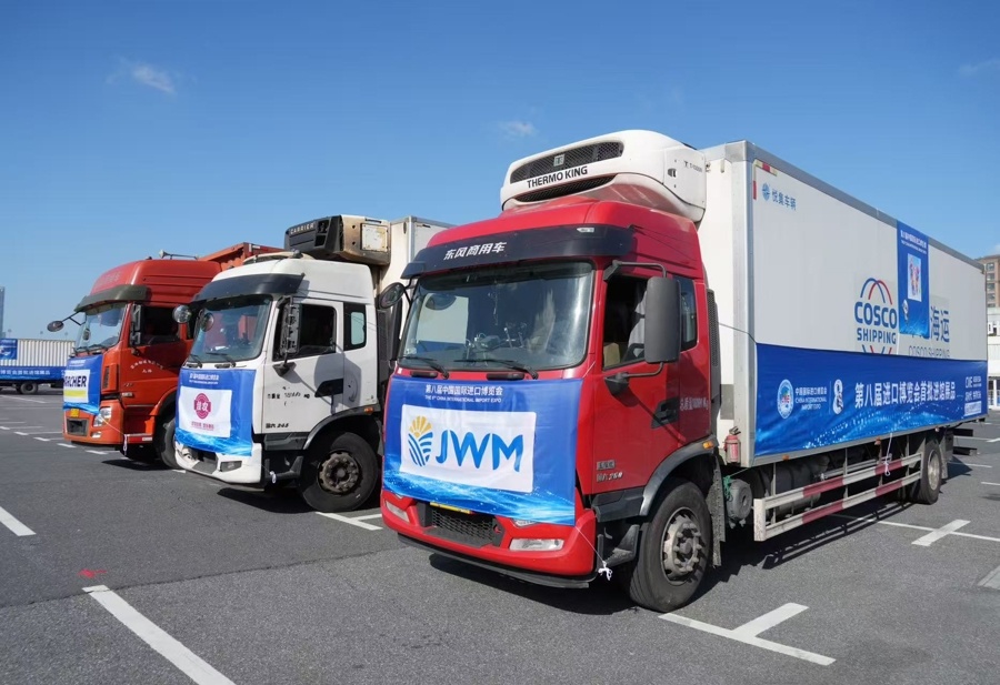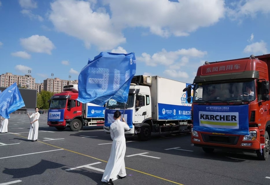 10月23日上午,6辆搭载着第八届进博会首批进馆展品的载重卡车缓缓驶入国家会展中心(上海)北广场,标志着本届进博会展馆搭建和布展工作进入冲刺阶段,预计将在11月3日基本完成搭建和布展工作。