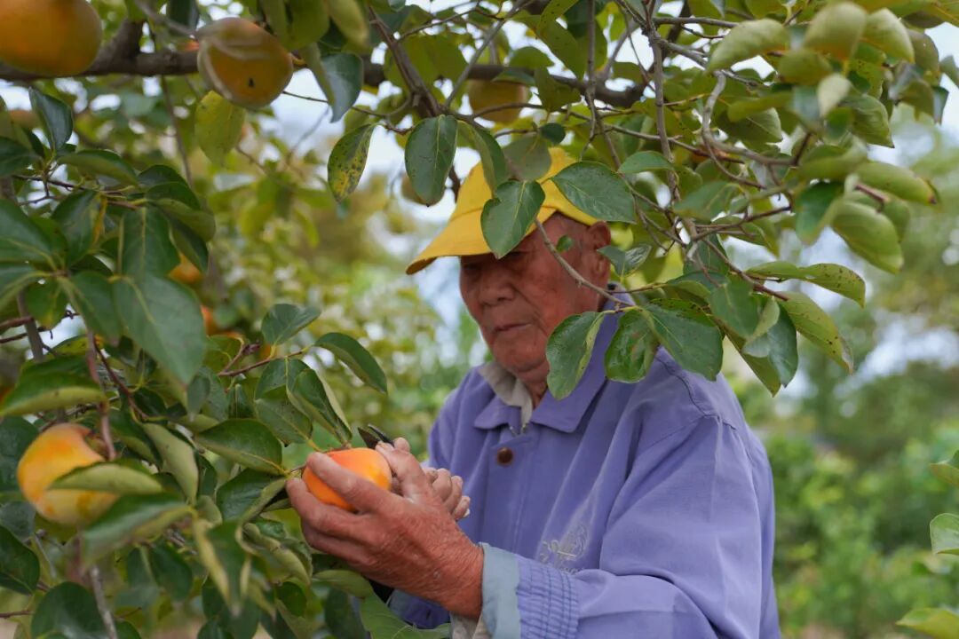 其实在永民村,柿子树远不止这一棵“明星”,30多年前,家家户户都习惯在宅前屋后种上几棵柿子树。这些枝繁叶茂的柿树,或挺立在庭院角落,或簇拥在田间地头,成了村里最寻常也最动人的景致。