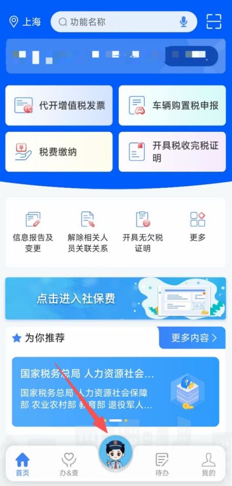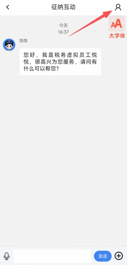 打开电子税务局App,点击底部中间的“悦悦”图标。