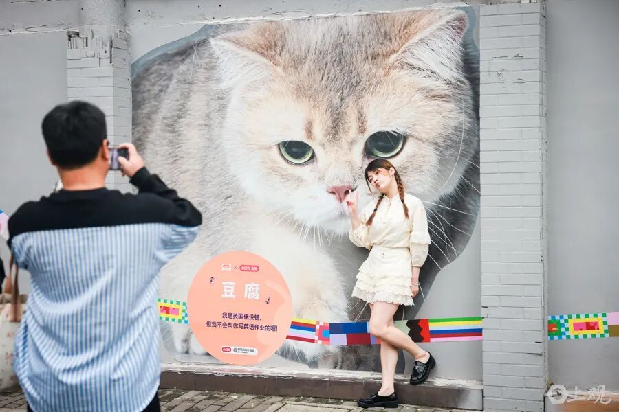 事实证明,他成功了。那段日子,方浜中路沿线变身“猫街”。“猫群”的出没与前来拍照打卡的市民人流汇成一片,让那片有些沉寂甚至冷清的区域变得十分热闹。