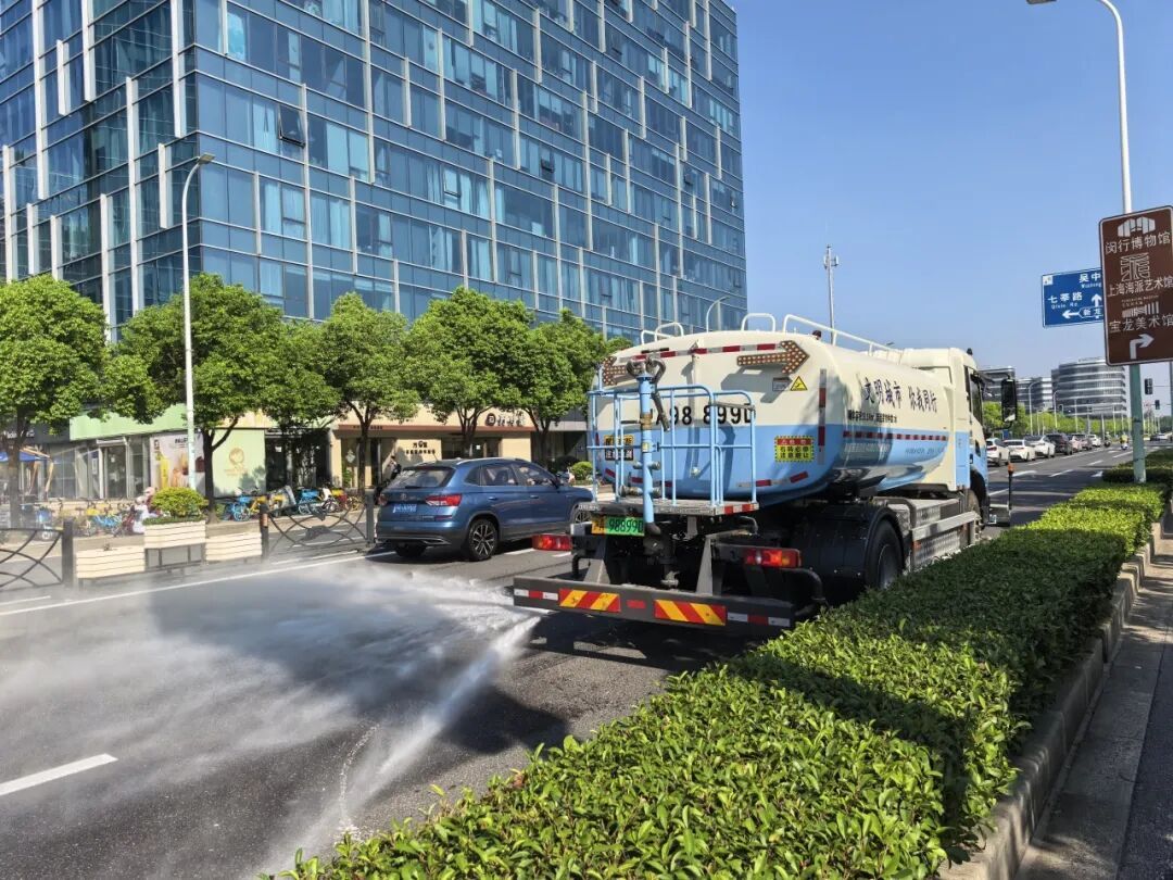 为以清爽整洁的道路面貌迎接进博会,七宝镇于10月15日开展重点道路“大冲洗”行动,全面擦亮城市“门面”。对辖区内七莘路、新镇路、中春路、漕宝路、沪松公路等交通干线,及外环高速上下匝道、道路中间隔离带、机非隔离带等关键区域进行全方位冲洗。