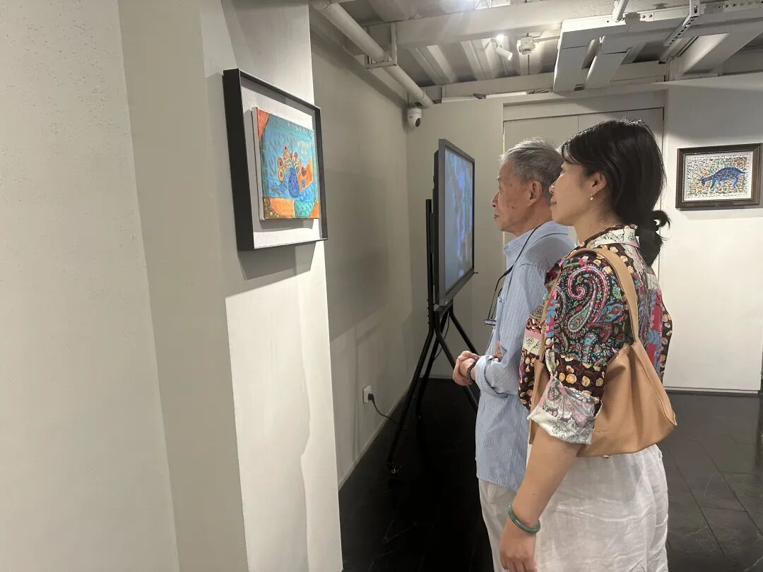听闻黄玉美的个人画展在市区开幕,曾一同在富安美术馆学习的黄虑特地带着父亲前来支持。看着墙上的画作,黄虑十分感慨:“当初带爸爸来画画,本是为了散心,没想到他不仅心情变好了,还结识了黄阿姨这样的朋友。今天能看到她的作品走出乡村,在这里展出,我由衷地为她感到骄傲,她的画里能看见更自由的灵魂。”