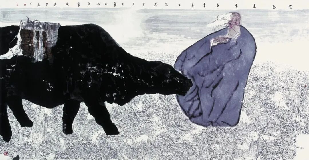 他的作品兼具技法深度与思想厚度,既注重物象精神气质的精准塑造,笔墨凝重华滋、黑白对比强烈,将中国传统哲学中的虚实美学精髓融入创作,又始终以“悲悯”为核心视角,关注人性本质与生命价值,从早期对故乡东北的情感寄托,到后期对历史人物的深度刻画,逐渐实现了从个体人道主义情感向人类共同价值追求的文化立场升华,成为当代水墨人物画领域不可多得的兼具传统底蕴与时代精神的艺术家。