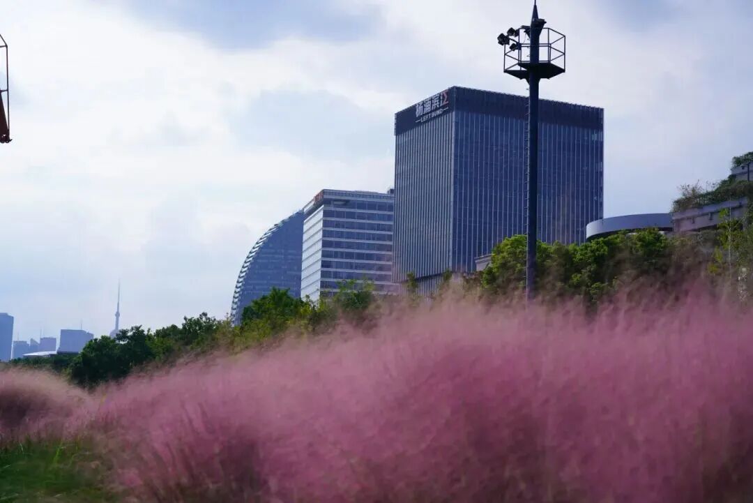 午后阳光正好,杨浦滨江的粉黛乱子草已进入最佳观赏期。滨江沿岸被绵延的粉色云雾笼罩,微风吹过,花穗摇曳如波浪起伏。这里是属于秋天的限定浪漫:沿着蜿蜒的木质步道穿行花海,捕捉被粉色包围的瞬间;借助夕阳斜照,逆光拍摄发丝染上金边的梦幻剪影。
