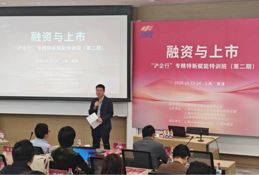 2025年10月23日至24日,第二期“沪企行”专精特新赋能特训班在上海天使会圆满举办。特训班由上海市经济和信息化委员会指导,上海市促进中小企业发展协调办公室、上海市中小企业发展服务中心(上海市中小企业上市促进中心)主办,上海科创金融研究院、上海天使会承办。近百位专精特新“小巨人”企业高管齐聚一堂,以“融资与上市”为主题共同探索新形势下中小企业融资破局之道。