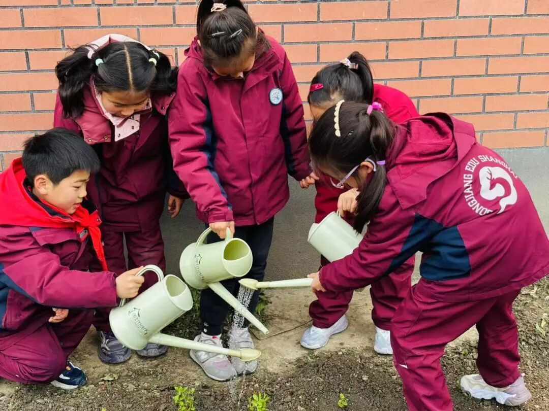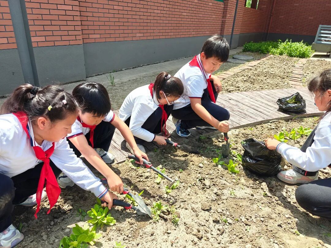 在快乐农场中,学生化身“春苗守护者”,用双手呵护每一株作物的成长。他们提着水壶,细心浇灌,让幼苗畅饮甘露。他们弯下腰身,认真除草,为农作物腾出生长空间。