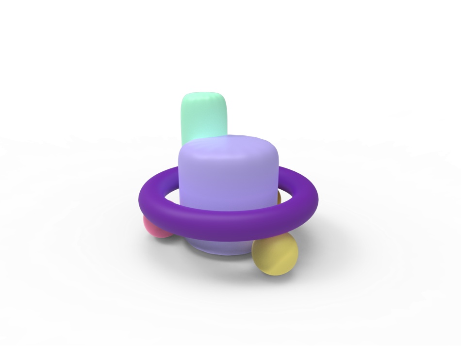 作品以“纸杯蛋糕”为灵感,色彩从内层浅紫向外层浅青自然过渡,渐变柔和且层次分明。圆柱与圆环边缘均打磨出圆润弧度,摒弃生硬线条,既强化了可爱有趣的风格,又确保坐憩时触感温和舒适。