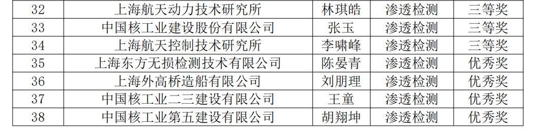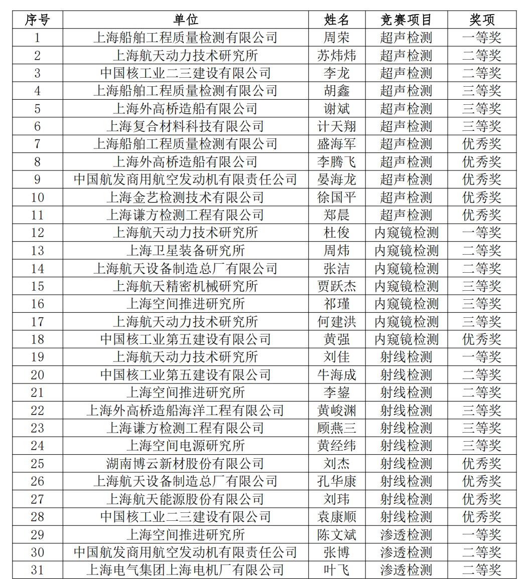 经过两个多月的激烈角逐,选手们沉着从容、操作精准,充分展现了新时代技能人才的工匠精神。最终,38位选手脱颖而出,斩获佳绩。其中,来自上海市船舶工程质量检测有限公司的周荣从事无损检测工作十余年,凭借扎实的专业功底摘得本次竞赛一等奖。他说:“无损检测是保障质量安全的‘火眼金睛’,每一次精准检测都关系到产品质量与生产安全。能与各领域顶尖选手同台竞技,不仅锤炼了技艺,也拓宽了视野,为今后的工作带来了新的启发与思考。”