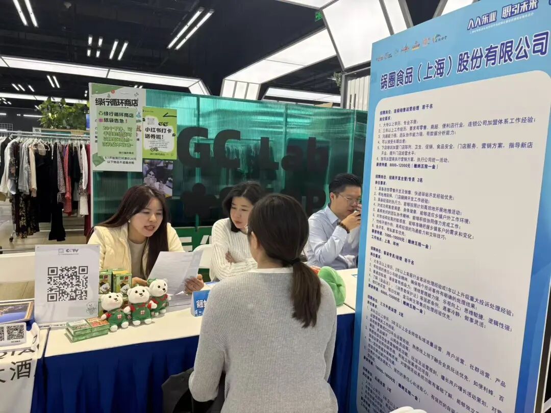 对企业而言,本次专场招聘会也为他们吸纳了更多人才。在锅圈食品(上海)股份有限公司的展板上,连锁销售运营经理、门店招商开发经理、三方线上运营等岗位都有不小的招聘需求。
