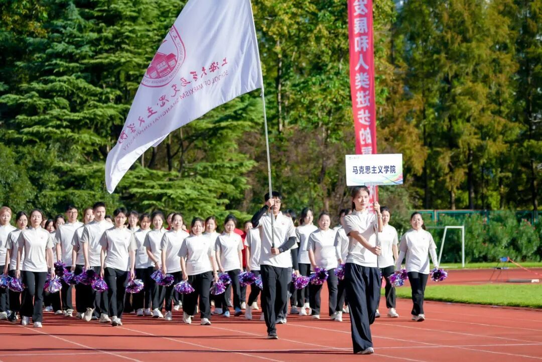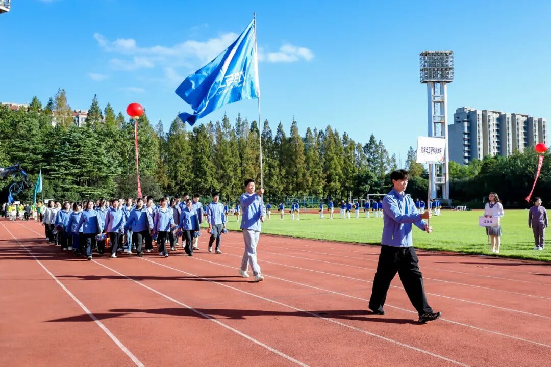 在行进乐声中,各学院、机关部处及裁判员方阵依次入场。他们步伐整齐、口号嘹亮,精神饱满,充分展现了上大师生昂扬向上的精神风貌与青春风采。