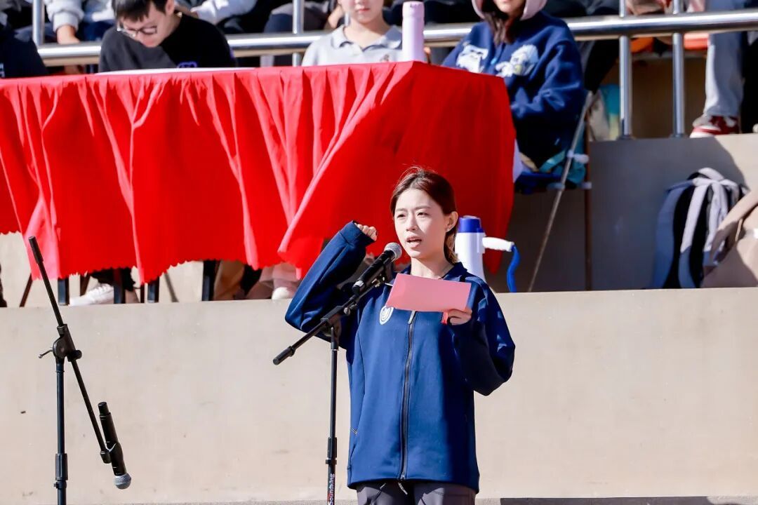 黄雪辰的惊喜亮相将现场气氛推向高潮。她结合亲身经历,分享了自己在四届奥运赛场上努力拼搏、为国争光的经历的拼搏故事,鼓励同学们在学习与生活中发扬坚持不懈、勇于挑战的体育精神。