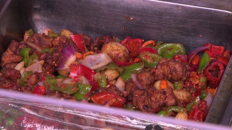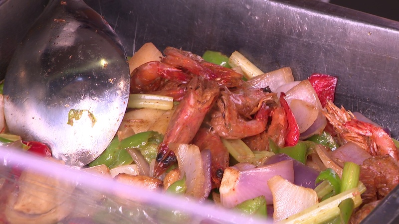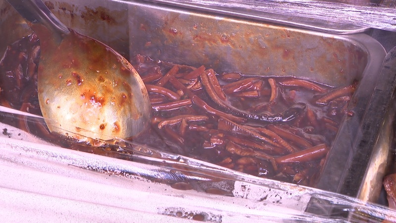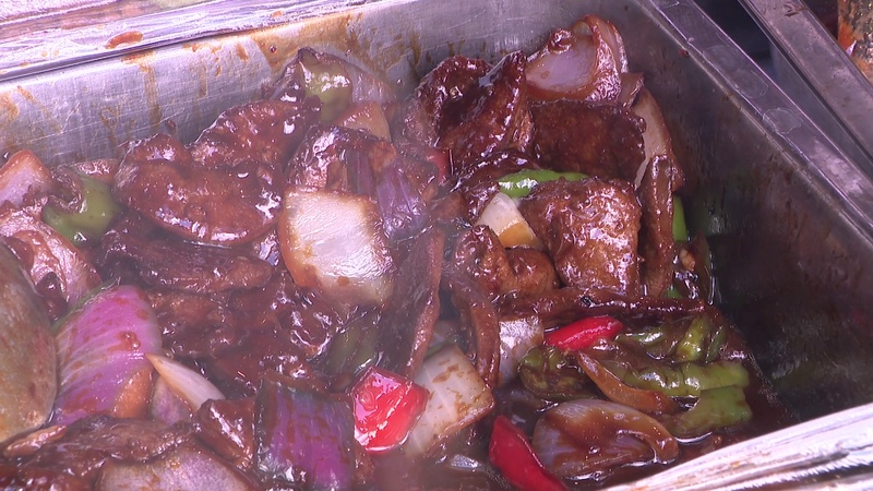 日前,记者在斜土东路22号大富贵丹凤楼前看到,外带菜摊位摆放在显眼的位置,供应的各种小炒一字排开——鳝丝炒笋丝、蚝油牛肉、酱爆猪肝、鱼香肉丝、咕咾肉、葱烤鲫鱼、椒盐小酥肉、炒素、辣子鸡、干锅大虾等10多个品种,价位从8块到38元,满消费50元还可以赠送蔬菜一份或者蛋炒饭一份,很是实惠。市民胡老伯今天买了一份蚝油牛肉,一份鳝丝炒笋丝,一共66元,还送了一客蛋炒饭。“蛮实惠的,一个人吃,两个菜,一天吃饭问题解决了。”