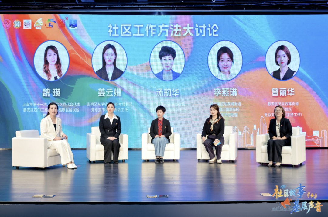 社区工作方法大讨论环节中,在静安区石门二路街道新福康里居民区党总支书记魏瑛的带领下,嘉定区江桥镇嘉豪社区党总支书记、居委会主任汤莉华,崇明区东平镇前进新村居民区党总支书记、居委会主任姜云姗,静安区天目西路街道卓悦居居民区党总支副书记曾丽华,浦东新区陆家嘴街道仁恒滨江园居民区党总支书记助理李燕琳等4名社区工作者围绕深入开展“四百”大走访活动中的具体做法,相互探讨如何做实联系服务群众工作。