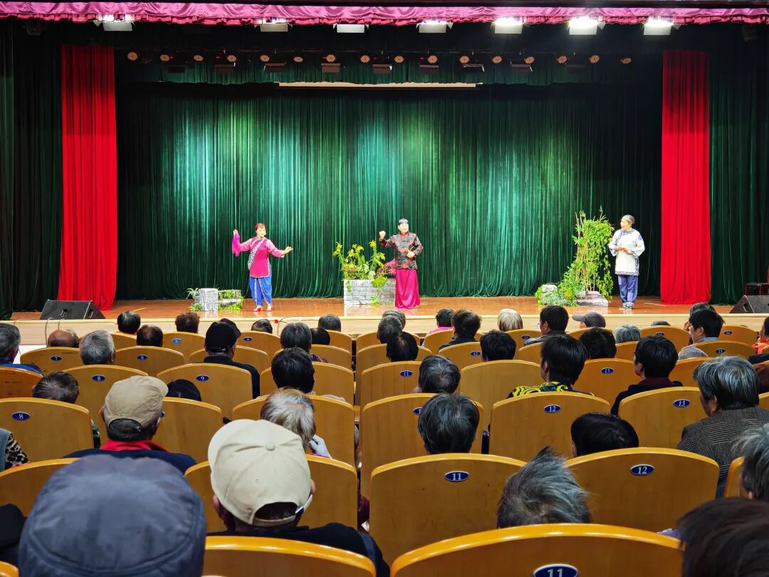 下午17点30分,距离演出开场还有半小时,竖新镇社区文化活动中心的剧场内已热闹起来。不少观众提前到场,抢占观看演出的最佳位置。